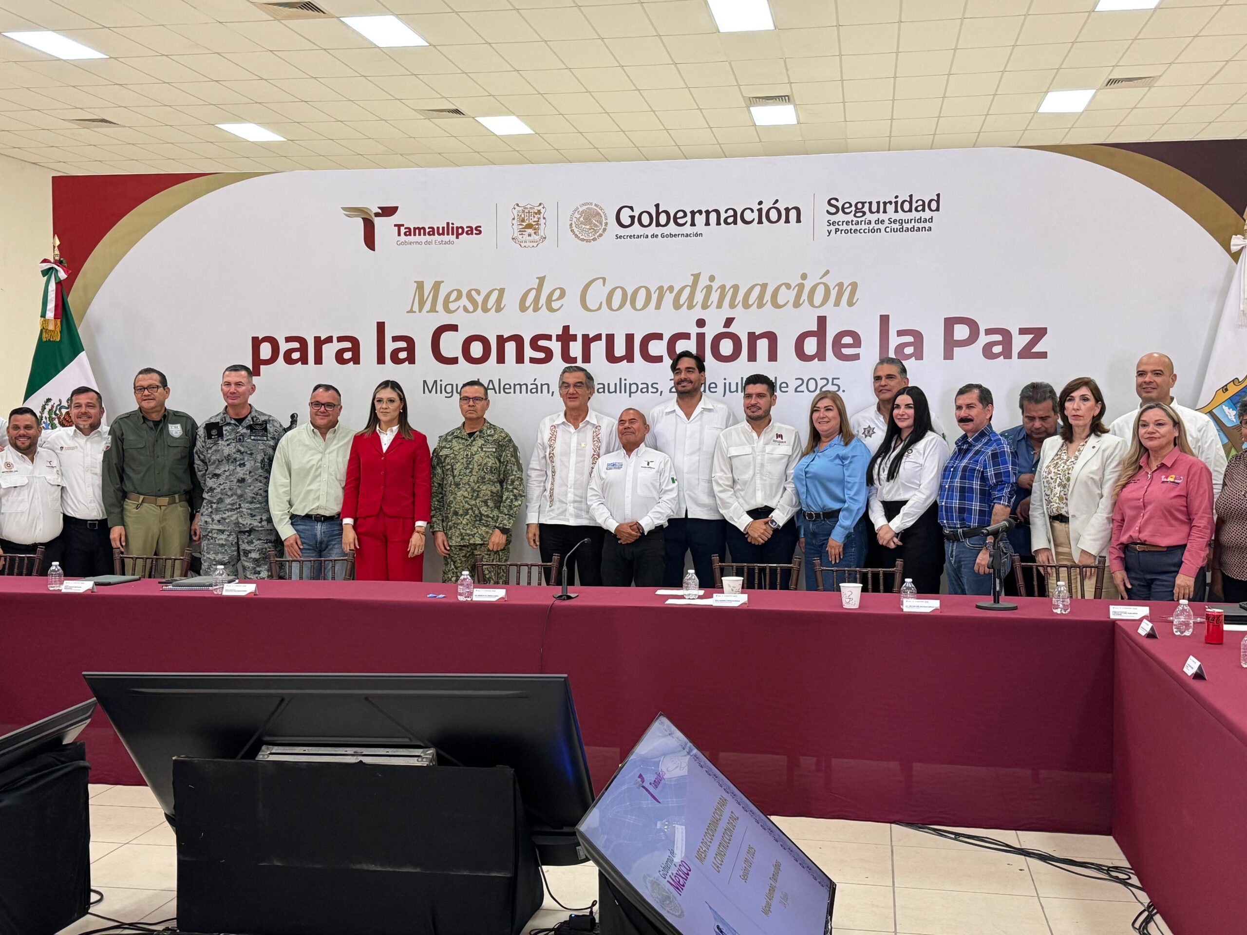 El Gobernador Constitucional del estado, Doctor Américo Villarreal Anaya presidió la sesión de la Mesa de Coordinación para la Construcción de la Paz, celebrada en ciudad Miguel Alemán, Tamaulipas, en la cual participó el Presidente Municipal Carlos Peña Ortiz.